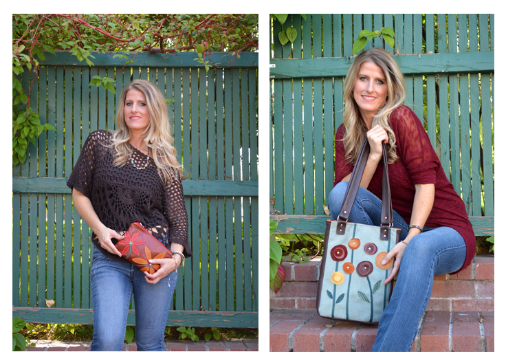 Here are a couple pictures from today’s photoshoot featuring the newest poppy ipad tote and also the leather daisy clutch. These two bags are perfect for a casual everyday look with a pair of jeans and sweater. These handmade one of a kind bags are both available for purchase by