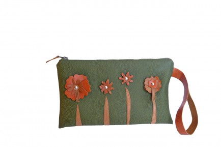 Green and Orange Flower Wristlet