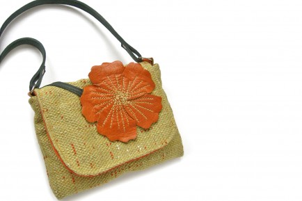 Made with high end upholstery fabric. Orange Leather Blossom Sewn with Yellow thread. Snap closure.