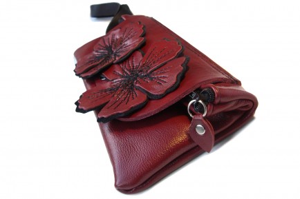 Made with gorgeous red leather, this clutch was made with big Blossoms that were attached to front flap.