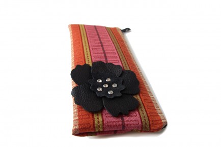 Striped Upholstery Pouch With Leather Blossom