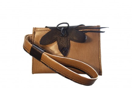 I used black leather and made a flower for the snap closure. Vinyl Wristlet.